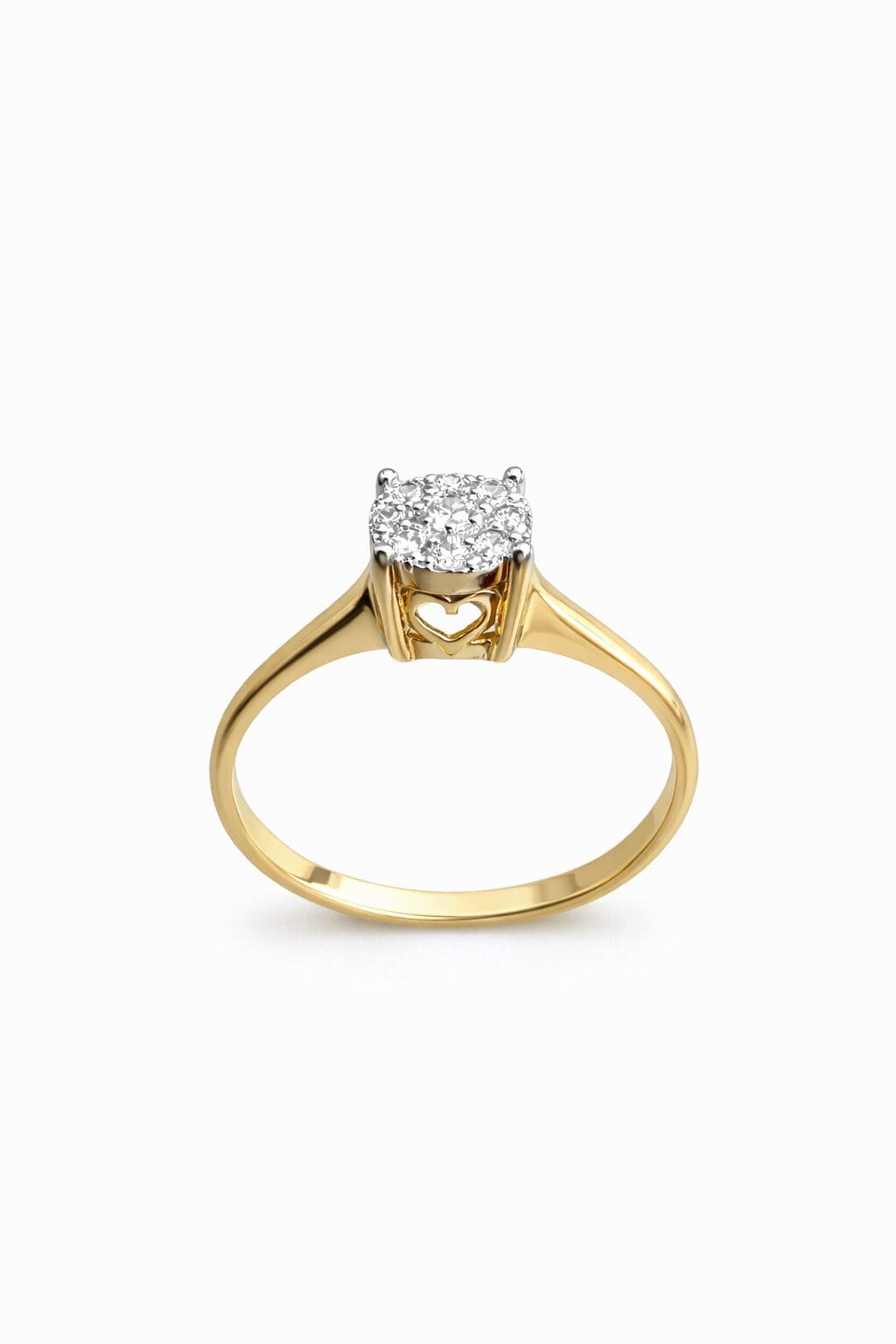 This Elegant Engagement Ring Is Crafted From 14k Yellow Gold And Features A Brilliant Diamond Center With A Total Diamond Weight Of 0.11 Carats. With A Lightweight And Comfortable Gold Weight Of 1.80 Grams, This Ring Is Perfect For Everyday Wear While Maintaining A Refined And Luxurious Look. The Romantic Heart Detail Beneath The Diamond Adds A Meaningful Touch, Symbolizing Love And Commitment. Designed By Niloofar Jewellery And Shipped Worldwide From Dubai, This Engagement Ring Is A Timeless Choice For A Beautiful Beginning.