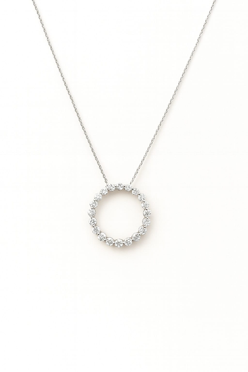 This Stunning Necklace Is Crafted From Premium 18K White Gold And Showcases A Refined Circular Pendant Fully Set With Natural Diamonds. The Circle Design Symbolizes Eternity, Unity, And Timeless Beauty, Making This Necklace A Meaningful And Elegant Choice.