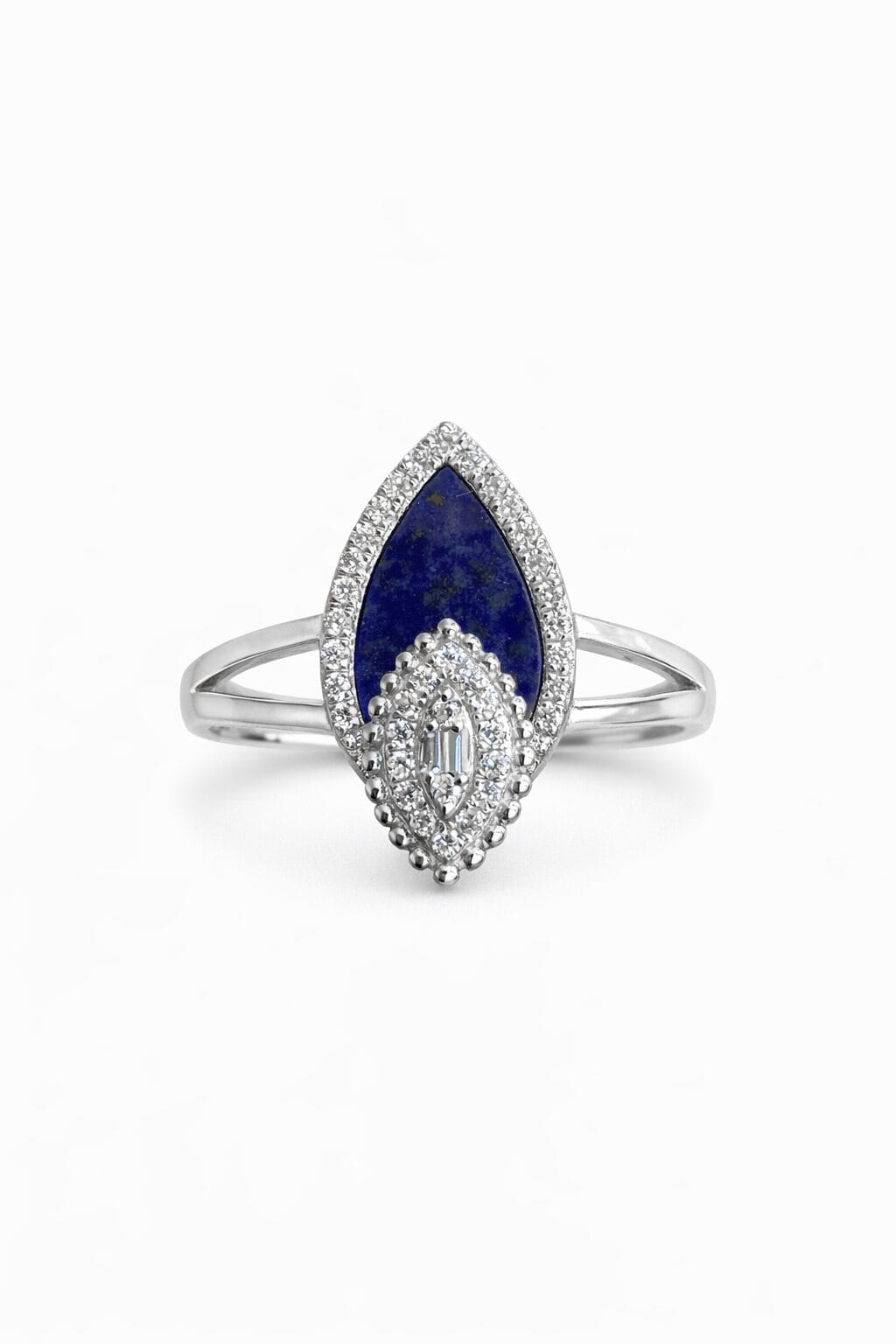 This Exquisite Ring Is Crafted From 18k White Gold And Features A Stunning Natural Lapis Lazuli Stone Weighing 0.74 Carats. The Deep Blue Gemstone Is Beautifully Complemented By Natural Diamonds With A Total Weight Of 0.16 Carats, Adding Brilliance And Sophistication To The Design. With A Total Gold Weight Of 3.19 Grams, This Ring Offers Comfort, Durability, And Timeless Elegance. Created By Niloofar Jewellery And Shipped Worldwide From Dubai, This Piece Is Ideal For Those Who Appreciate Fine Craftsmanship And Genuine Natural Gemstones.