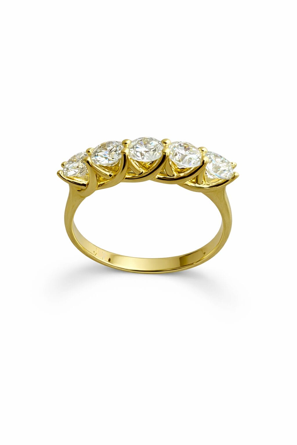 This stunning five-stone diamond ring is crafted from 18K yellow gold and set with a total of 1.19 carats of natural diamonds, symbolizing love, commitment, and timeless elegance. With a refined design and a total gold weight of 2.44 grams, this ring offers exceptional brilliance and everyday luxury.