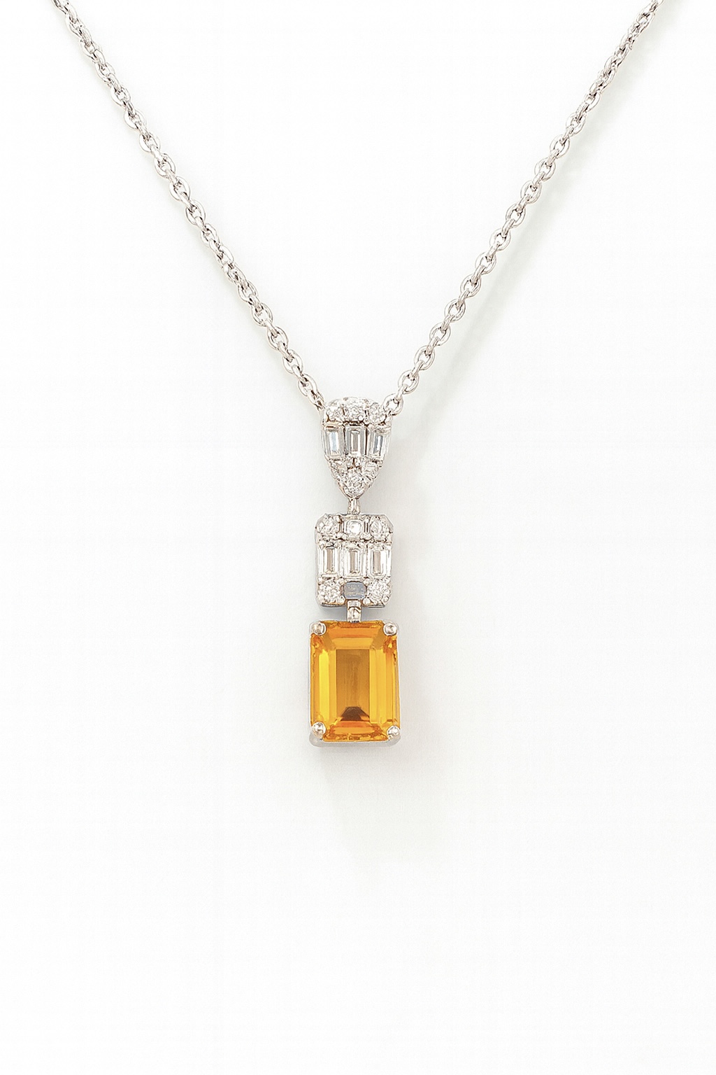 18k White Gold 2.73 g/Natural Diamond 0.21 ct/Natural Citrin