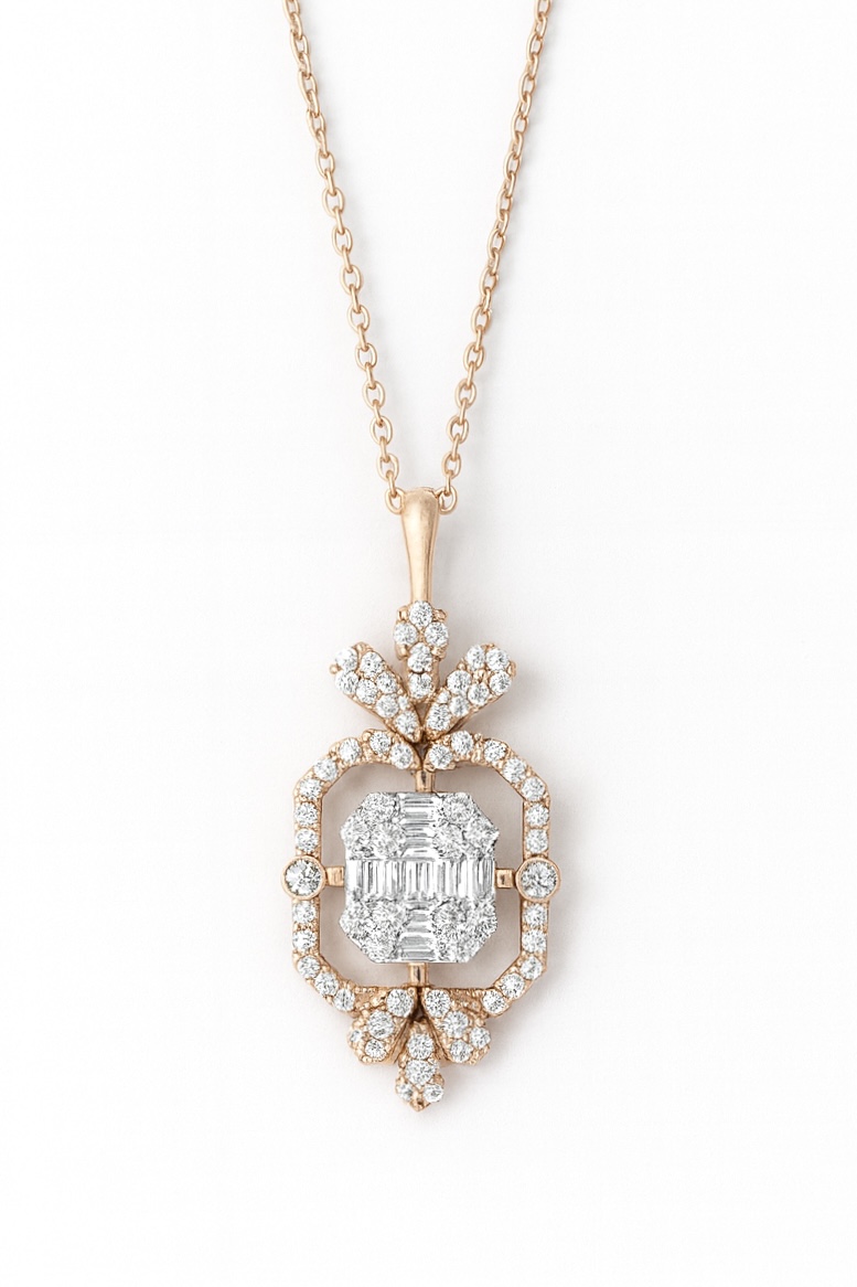 Experience the perfect blend of elegance and luxury with our 18K Rose Gold & White Gold Natural Diamond Pendant, a premium jewelry piece crafted for those who appreciate authentic beauty and high-end craftsmanship. This exquisite Pendant is designed in a refined two-tone combination of warm rose Gold and classic White Gold, offering a versatile and timeless aesthetic suitable for both everyday elegance and special occasions.