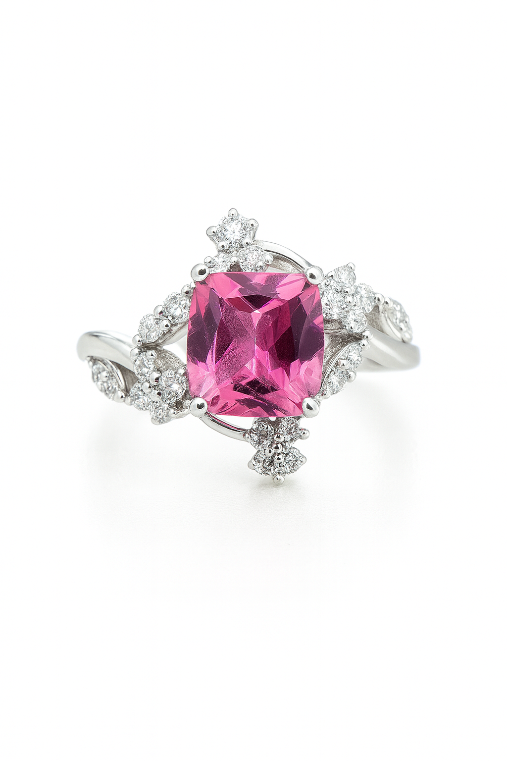 18k White Gold 3.29 g/ Natural Diamond 0.27 ct/ Pink Sapphire 1.38 ct