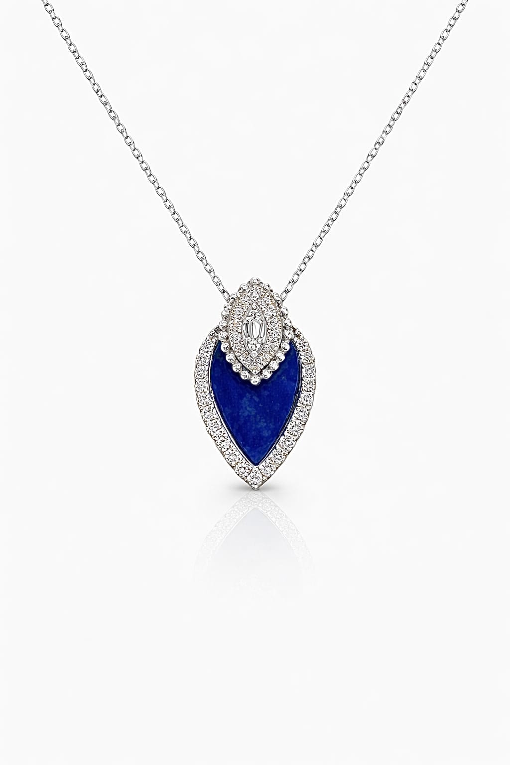 Luxury Natural Lapis Lazuli And Diamond Pendant Necklace – 18K White Gold | Niloofar Jewellery