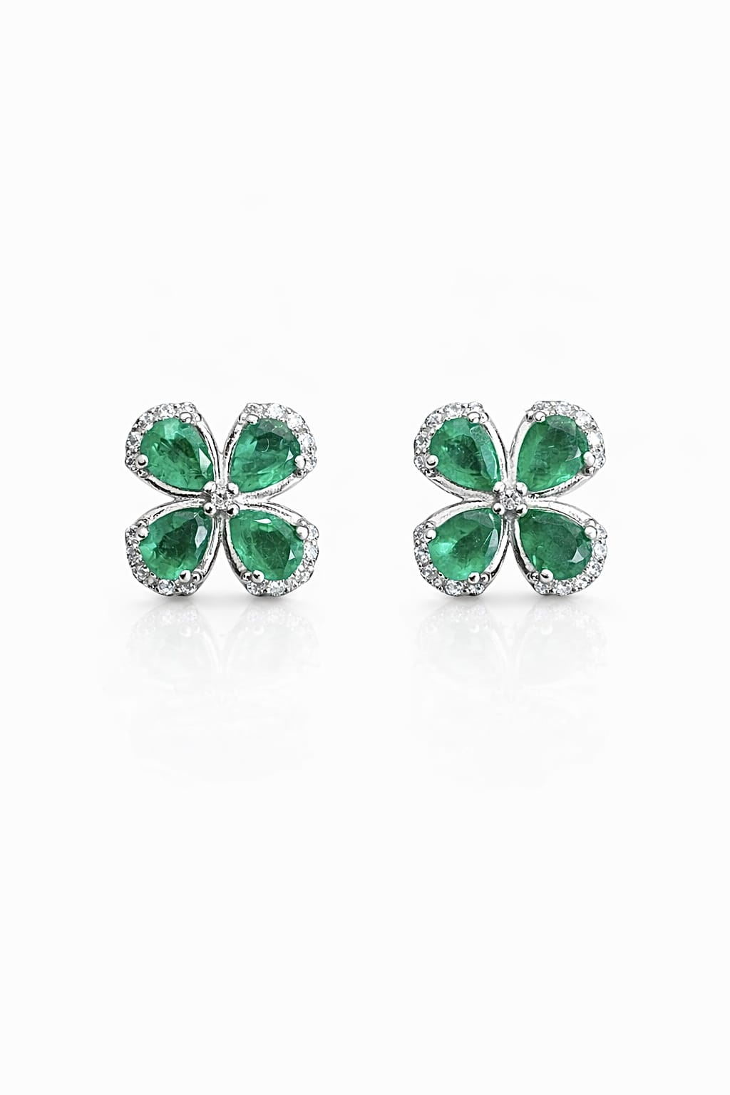These Elegant Luxury Stud Earrings Are Expertly Crafted From 2.13 Grams Of 18K White Gold And Feature A Refined Floral Design Set With 1.15 Carats Of Natural Zambian Emeralds, Renowned For Their Rich Green Color And Exceptional Clarity.