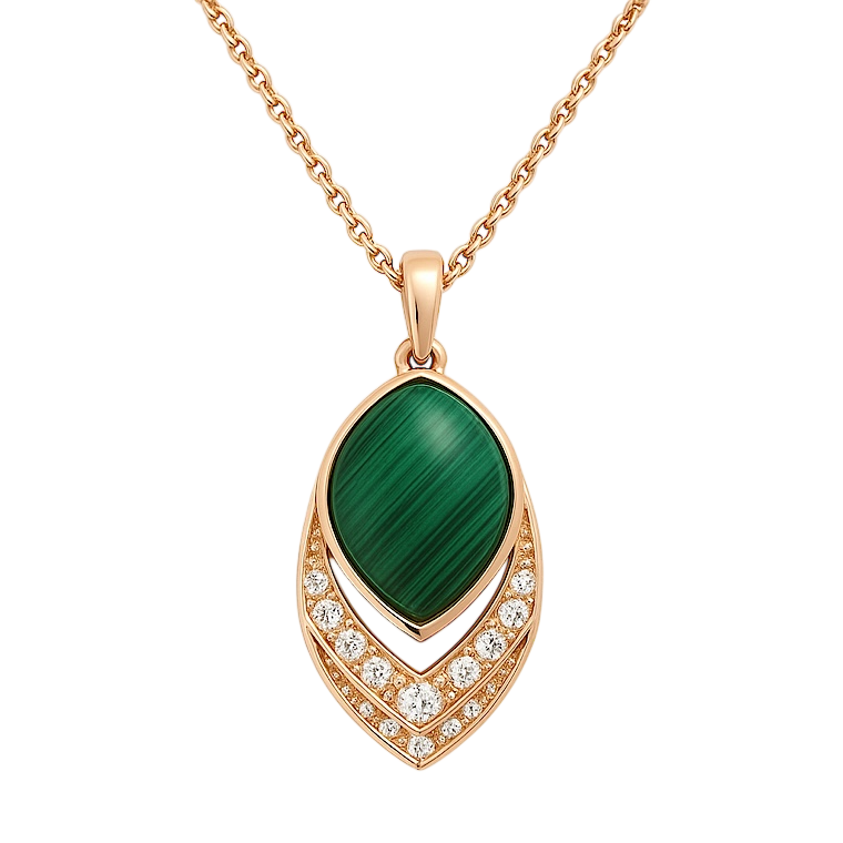 18k Ros Gold 4.65 g/Natural Malachite 3.07 ct /Natural Diamond 0.20 ct