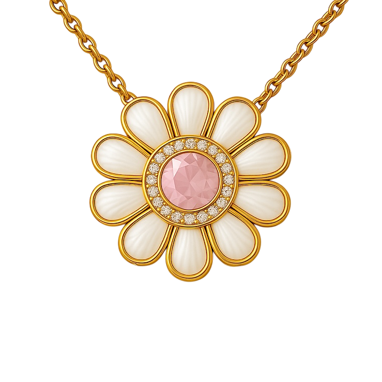 18k Rose Gold/Natural Diamond/Natural Rose quarts/Natural pearl/order on budghet