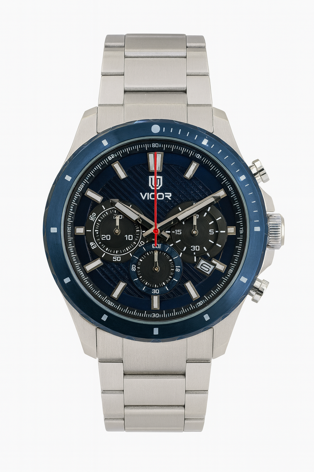The Vigor Swiss Watch Blue Edition is a luxury Swiss-made Quartz Watch designed for customers in Dubai and across the UAE who appreciate premium craftsmanship, lasting durability, and a bold, elegant style. This timepiece features a deep blue dial paired with a matching blue bezel, giving it a distinctive and modern appearance suitable for both business and everyday wear. The stainless-steel case adds strength and durability, while the high-quality finishing provides a refined luxury look.