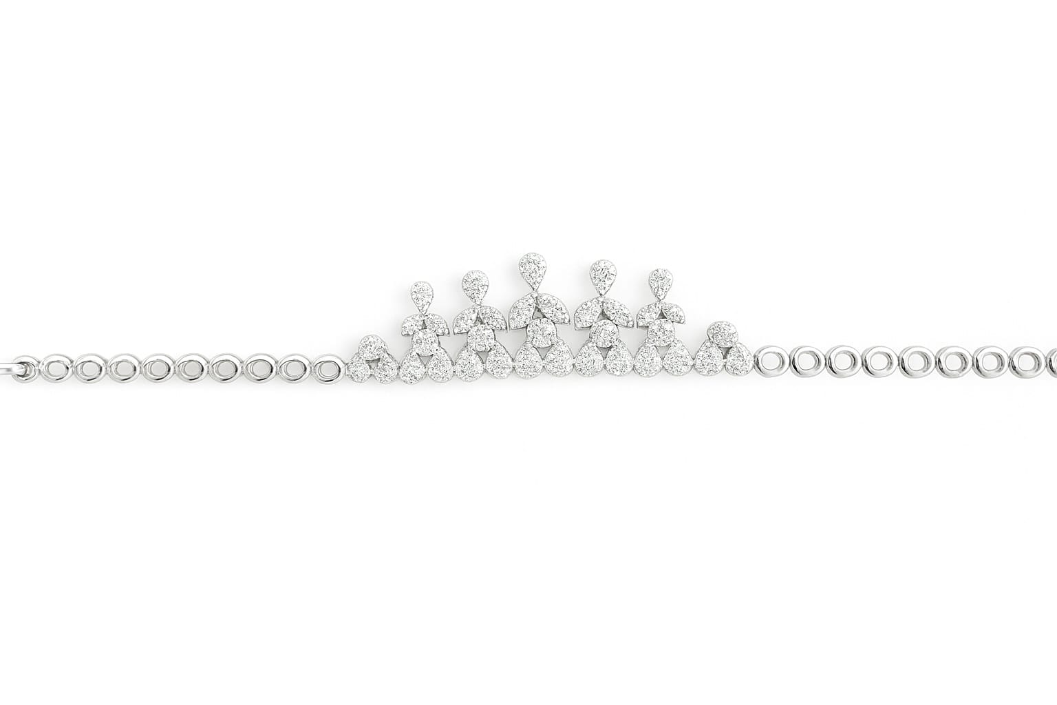 This White Gold Diamond Bracelet From Niloofar Jewellery Is A Beautiful Expression Of Fine Craftsmanship And Sophisticated Design. Crafted In Polished White Gold, The Bracelet Showcases An Intricate Central Motif Inspired By Delicate Floral And Vine Elements, Accented With Carefully Selected Natural Round And Marquise-Cut Diamonds That Create Exceptional Sparkle And Movement.